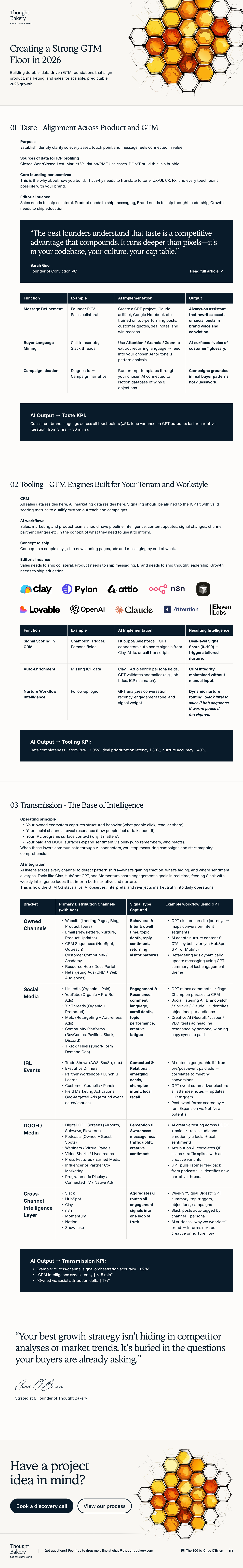 I’m building my 2026 GTM foundation using the Taste / Tooling / Transmission framework by Chaenara O’Brien (Thought Bakery).